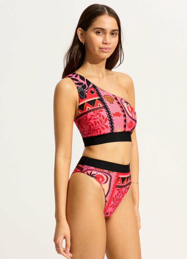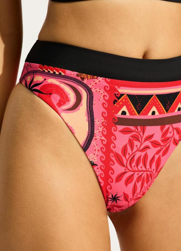 Wonderland Gathered Front Retro Bikini Bottom – Fuchsia Rose | Women Seafolly More Coverage