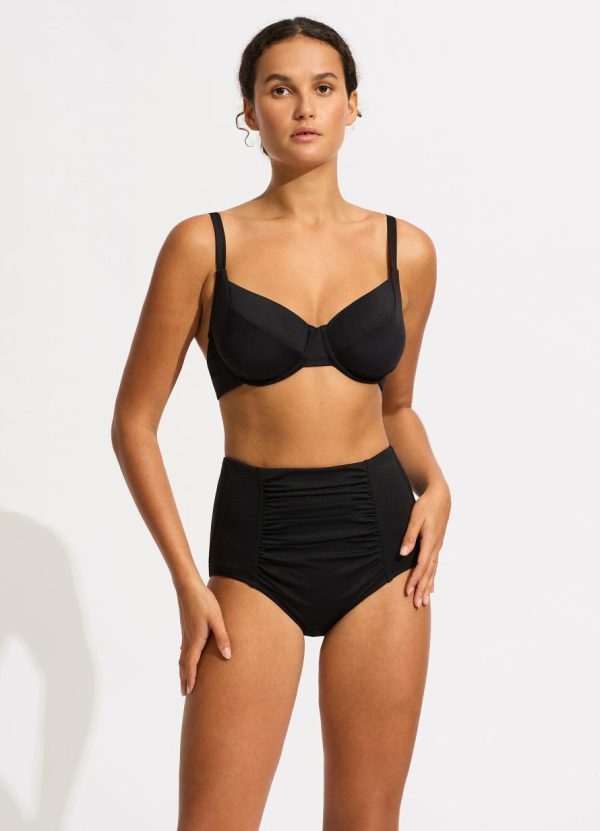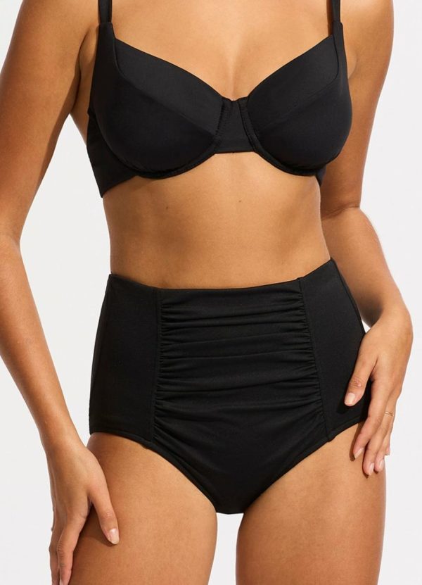 Seafolly Collective High Leg Ruched Side Bikini Bottom – White | Women Seafolly More Coverage