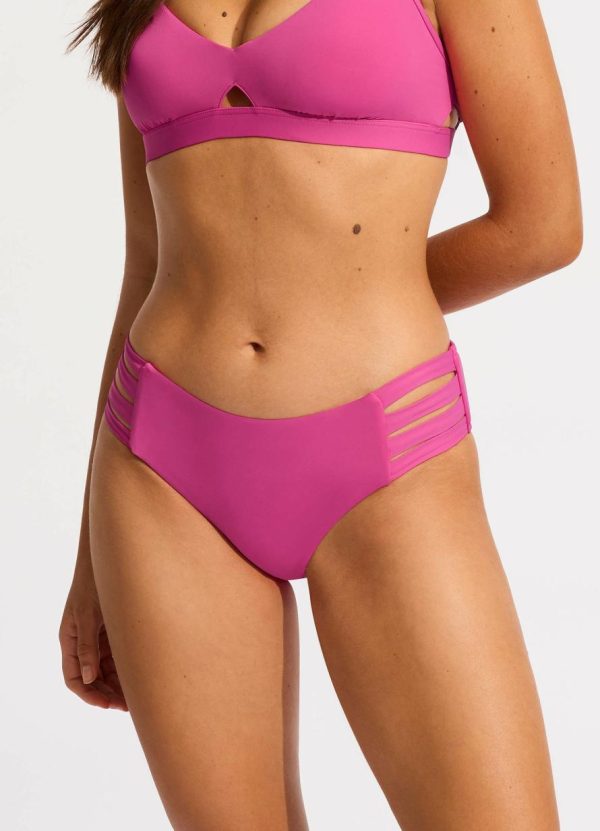 Seafolly Collective High Leg Ruched Side Bikini Bottom – White | Women Seafolly More Coverage