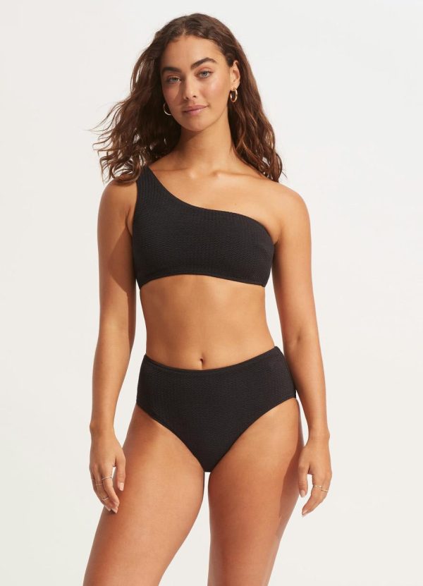 Seafolly Collective High Leg Ruched Side Bikini Bottom – White | Women Seafolly More Coverage