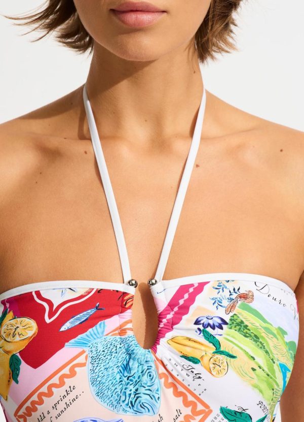 Seafolly Wish You Were Here Ring Front Bandeau One Piece – Fuchsia Rose